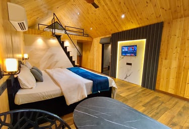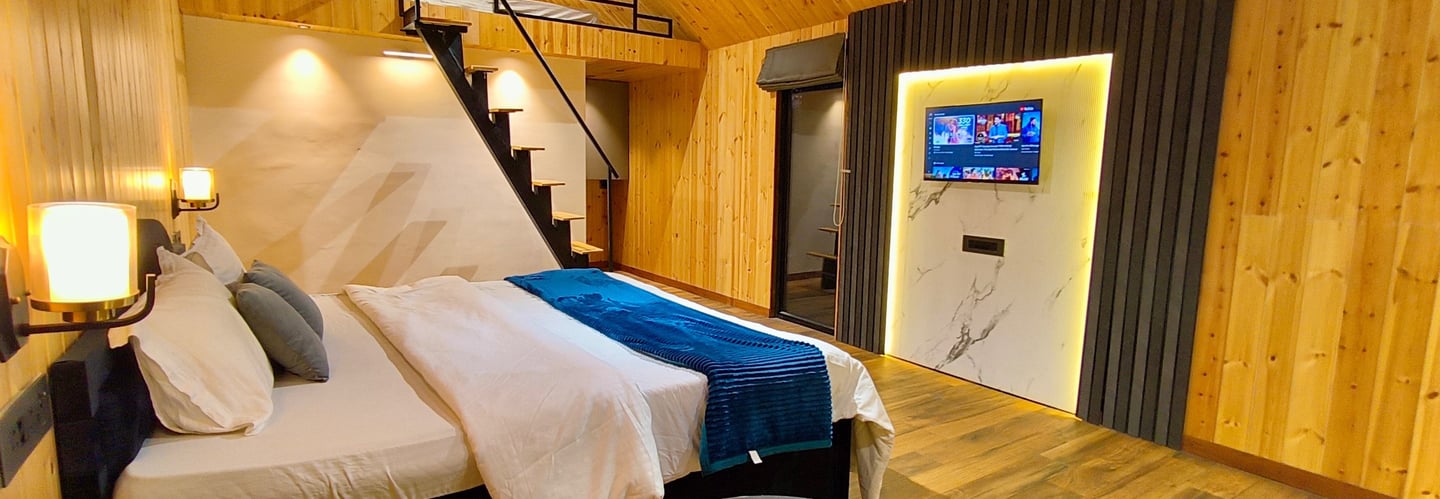 Experience luxury with our glass houses, wooden cottages, swimming pool, and beautiful event lawns.